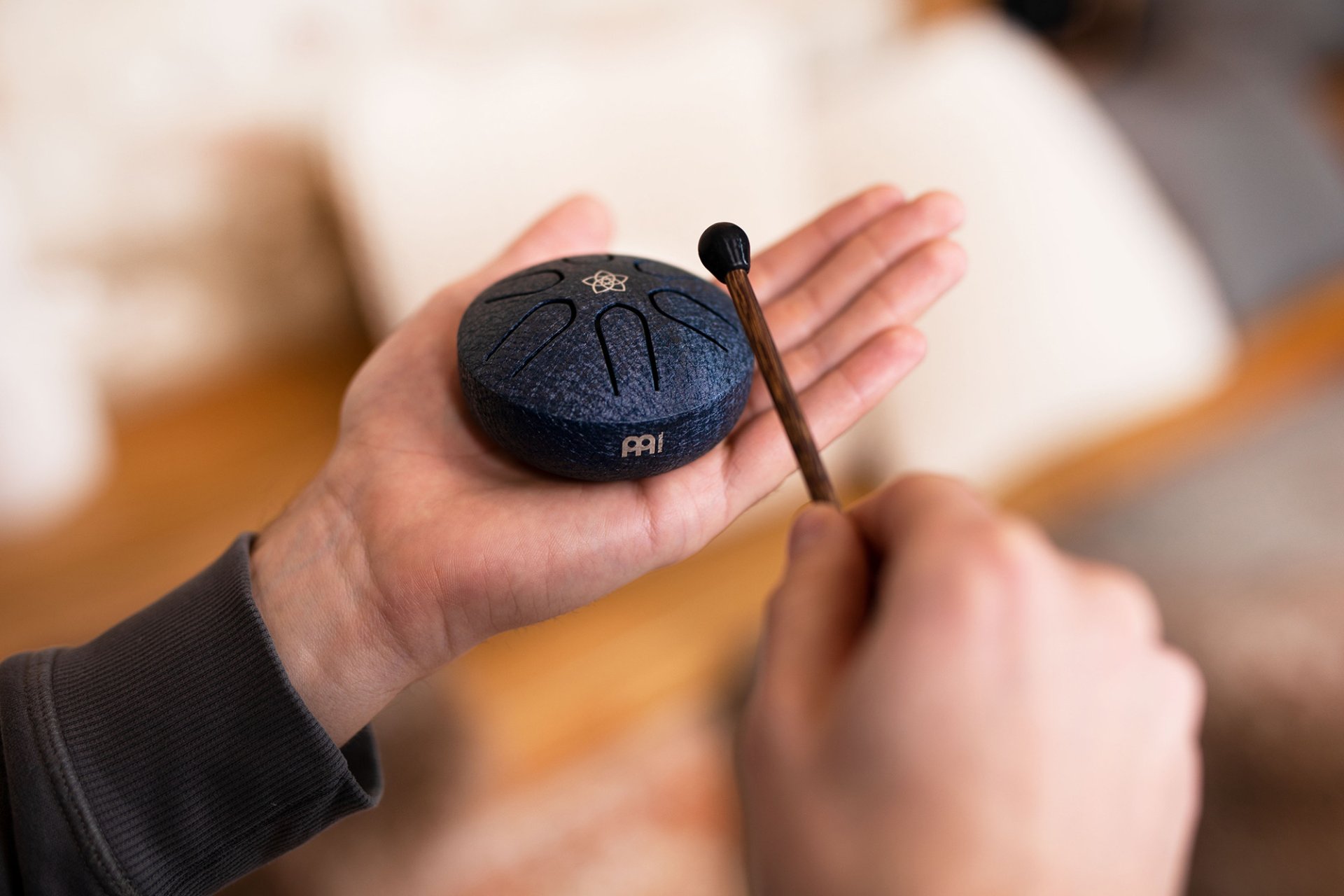 "Die Meinl Sonic Energy Pocket Steel Tongue Drum ist für jeden Musikliebhaber, Lehrer oder Klangtherapeuten geeignet. Sie hat eine sehr kompakte Größe und ist damit ideal für unterwegs. Ob im Studio, im Klassenzimmer, im Büro oder auf dem Couchtisch, diese Trommel mit einem Durchmesser von nur 3 Zoll (7,6 cm) kann von jedem und überall gespielt werden, unabhängig vom jeweiligen Können. Dank der vorgestimmten Töne können keine falschen Noten gespielt werden. Der Klang ist fröhlich und beruhigend.