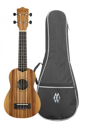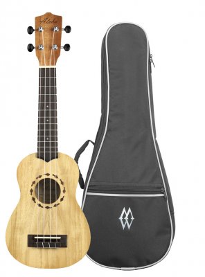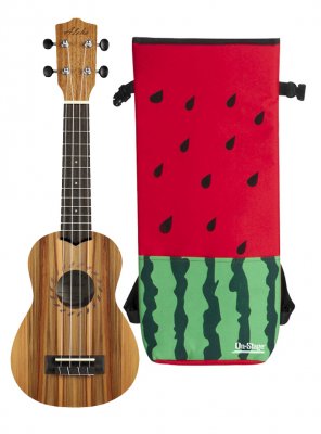 Sopran Korpus und Decke: Primavera laminiert Griffbrett und Steg: Palisander Leaf Schalllochrosette Lackierung offenporig matt Wasserabweisende Nylon-Tasche ...